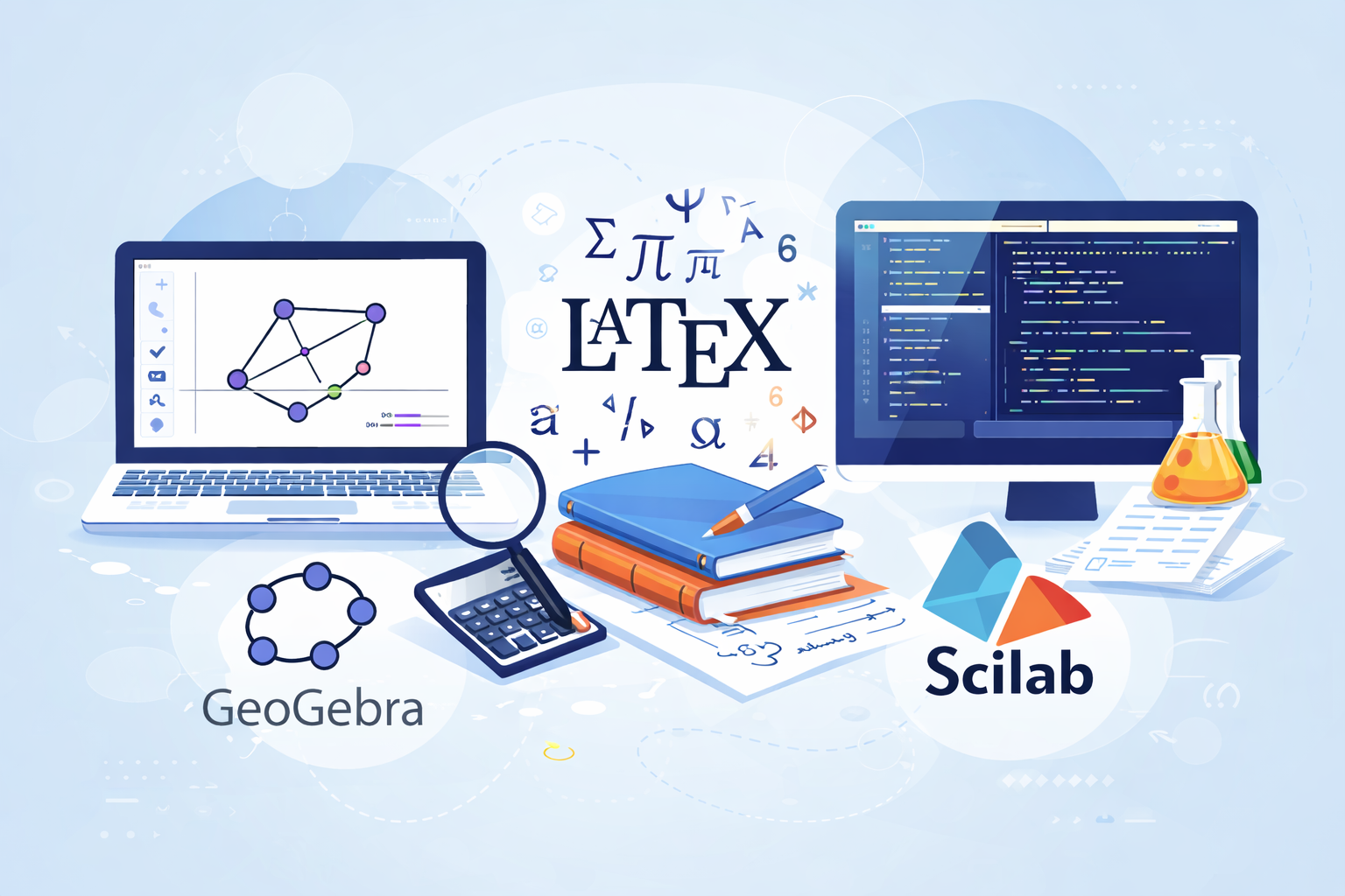 Khóa học nhằm trang bị cho sinh viên kiến thức và kỹ năng sử dụng các phần mềm hỗ trợ học tập và nghiên cứu Toán học bao gồm GeoGebra, LaTeX và Scilab.